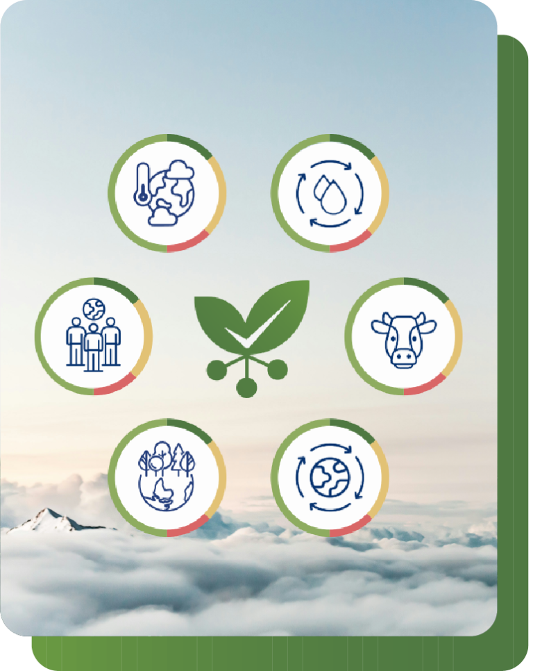 Infine Insight analysoi tuotteiden vastuullisuutta kuuden keskeisen dimension kautta. Dimensiot kattavat sekä ekologiset että sosiaaliset näkökulmat, kuten ilmastonmuutoksen, biodiversiteetin, vedenkäytön, kiertotalouden, ihmisten ja yhteiskunnan sekä eläinten hyvinvoinnin.